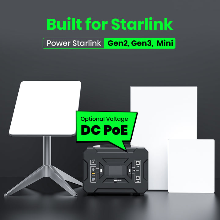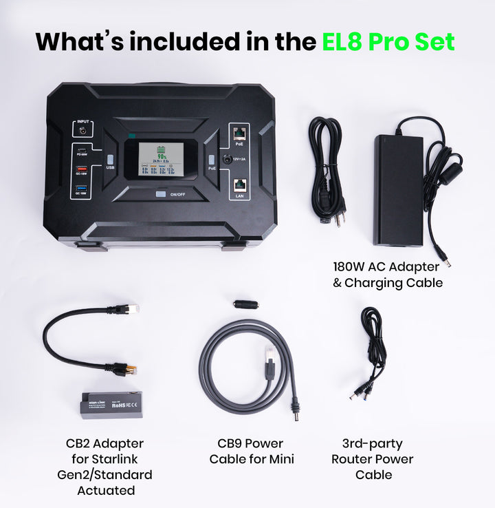 "The EL8 PRO is a portable power station designed specifically to power Starlink off-grid. It's compatible with Gen 2, Gen 3, and Mini, efficiently delivering POE to your Starlink without inverter losses."